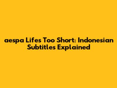 Hey K-pop fans, especially my fellow Aespa stans! Ever stumbled upon Aespa's amazing track "Life's Too Short" and wished you could understand every single lyric with Indonesian subtitles? You're in the right place, guys! This song is an absolute bop, and getting the full vibe with accurate Indonesian subs makes it even better. We're going to dive deep into why "Life's Too Short" is such a standout song in Aespa's discography and how you can find and appreciate the Indonesian subtitles that bring its message to life.