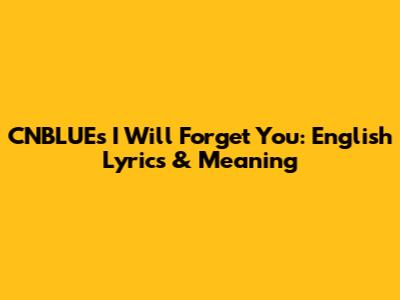 Let's dive into the heartfelt world of CNBLUE's I Will Forget You! This song is a real gem, and understanding the English lyrics can help you truly connect with its emotional depth. Whether you're a long-time BOICE or just discovering CNBLUE, you're in for a treat. We're going to break down the lyrics and explore the meaning behind this beautiful track. Get ready to feel all the feels, guys!