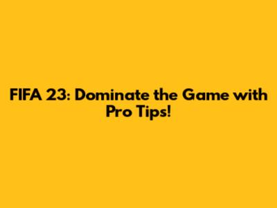FIFA 23: Dominate The Game With Pro Tips!