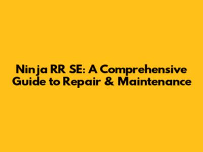 Ninja RR SE: A Comprehensive Guide To Repair & Maintenance