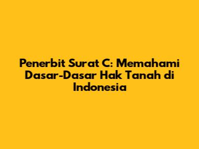 Surat C, atau yang sering disebut Letter C, adalah dokumen penting dalam sistem pertanahan di Indonesia. Namun, siapa sebenarnya yang menerbitkan Surat C ini? Artikel ini akan mengupas tuntas tentang penerbit Surat C, mengungkap peran pentingnya dalam mengidentifikasi pemilik hak tanah, serta memberikan wawasan mendalam tentang seluk-beluknya. Jadi, mari kita mulai perjalanan kita untuk memahami lebih dalam mengenai dokumen penting ini, guys.