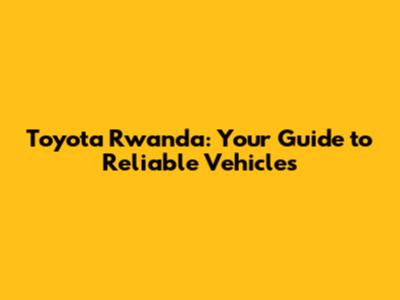 Toyota Rwanda: Your Guide To Reliable Vehicles