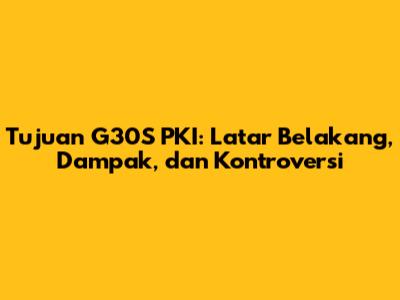 Tujuan G30S PKI: Latar Belakang, Dampak, Dan Kontroversi