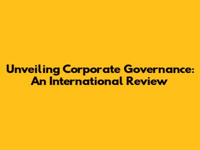 Unveiling Corporate Governance: An International Review