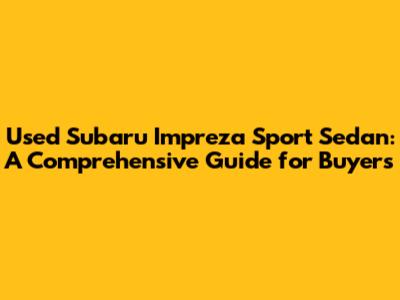 Used Subaru Impreza Sport Sedan: Your Ultimate Guide